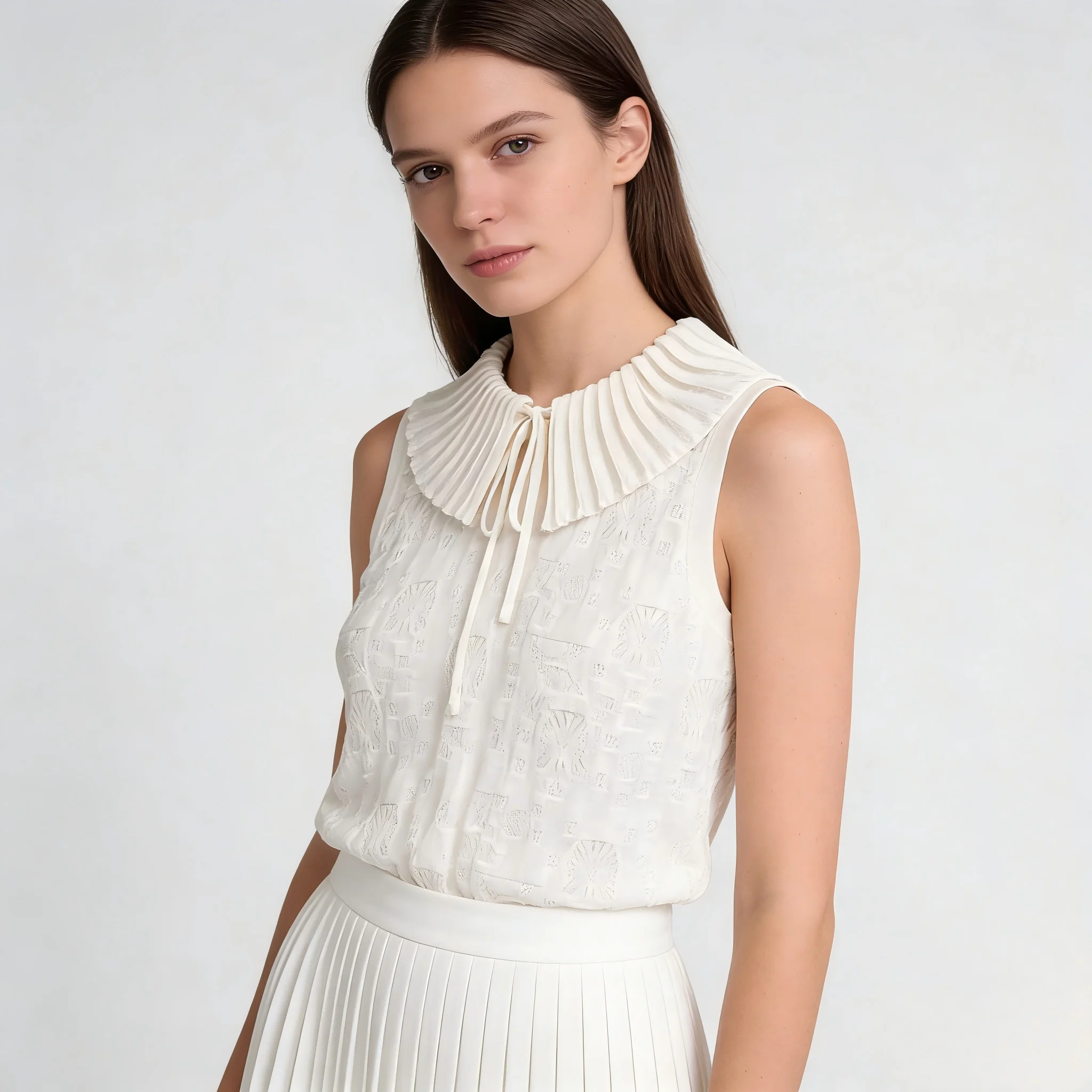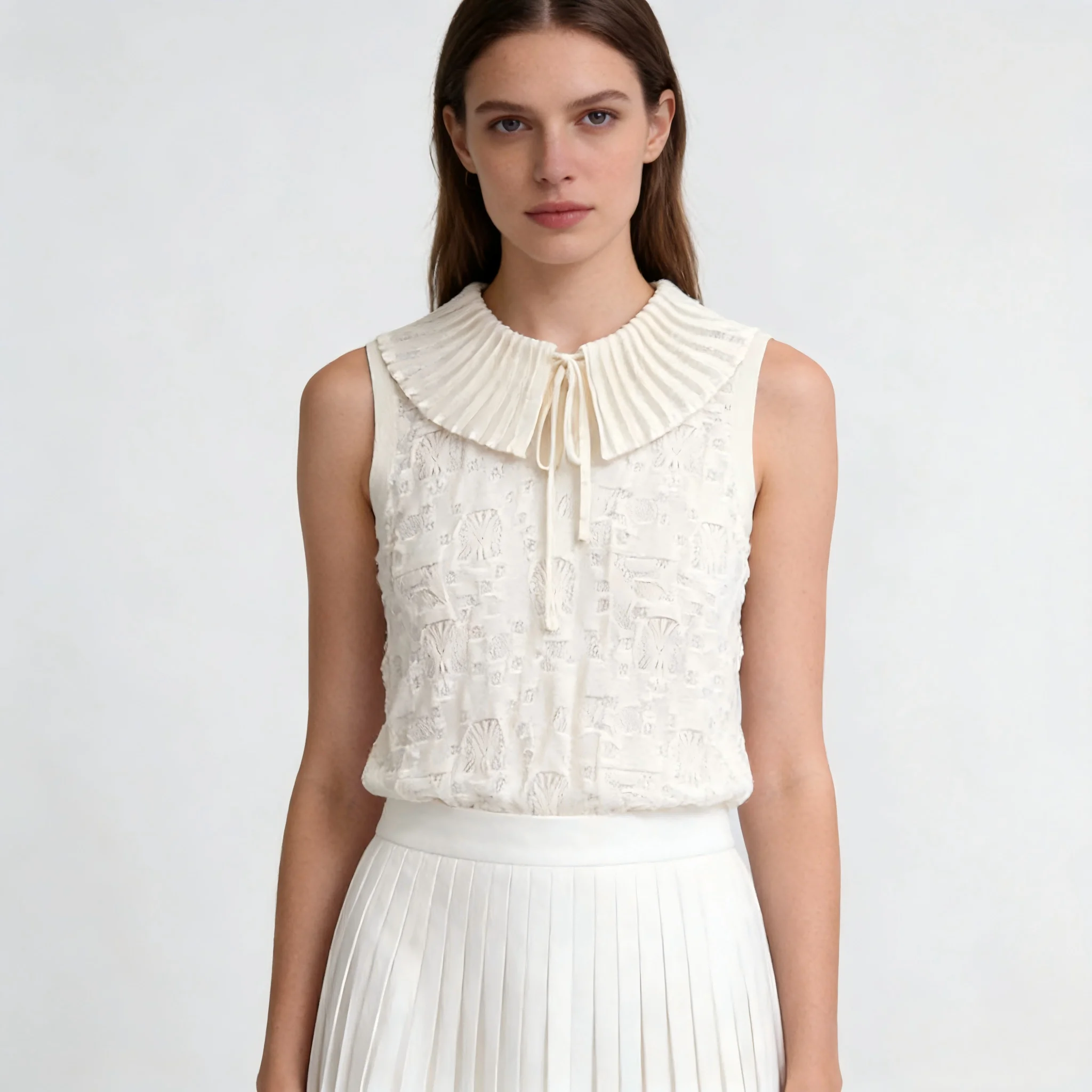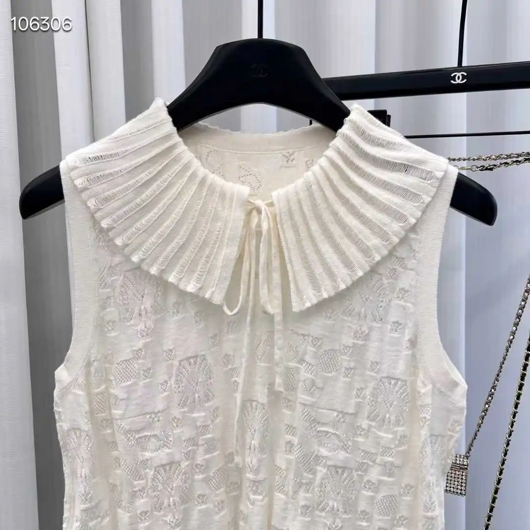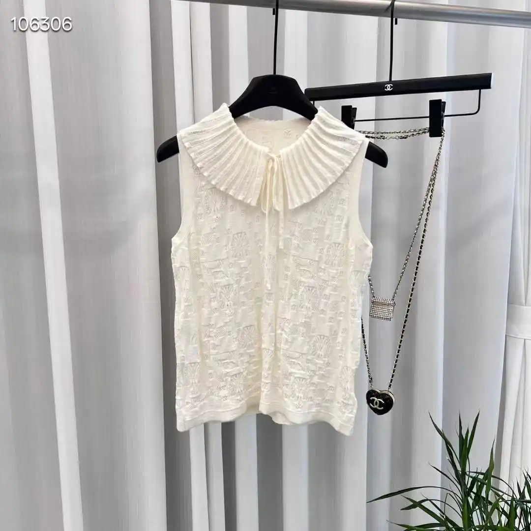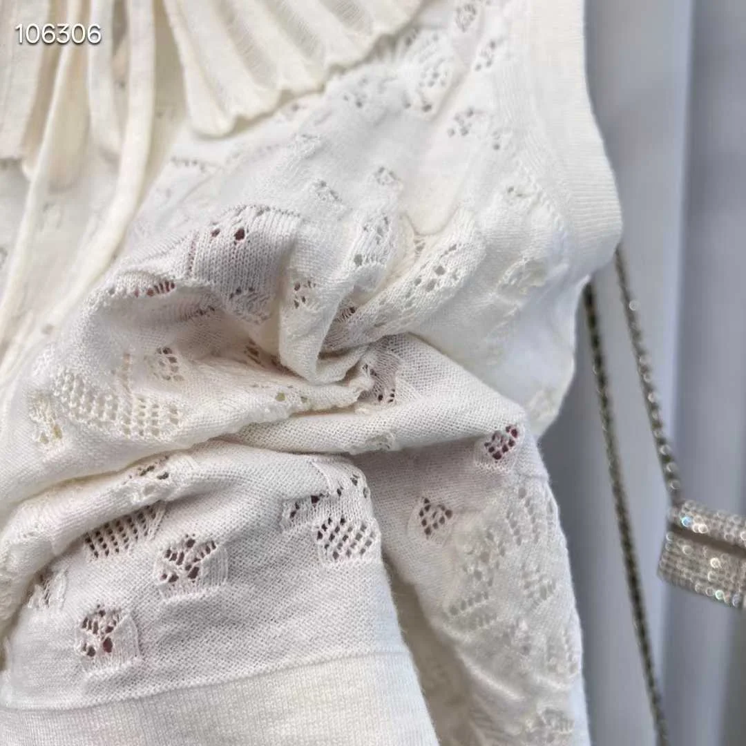 Women's Elegant High-end Top with Butterfly Collar Hollow Texture Solid Color Sleeveless Knitted T-shirt Simple Casual Vacation